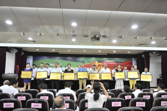 与会领导嘉宾上台共同合影留念,烟台市首届“美丽乡村”颁奖暨水母网农业频道启动仪式直播到此结束,感谢各位网友关注!